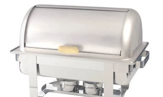 This roll top chafer is perfect for busy buffet lines. It comes with, and is designed to hold, a full size food pan with an 8 qt. capacity. An included dripless water pan helps to collect moisture beneath the food pan to protect tables and counters from water spots, while at the same time, the versatile roll top cover allows for safe, easy access by staff and guests alike.